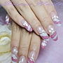 選用水晶粉雕新色來製作這次的指甲~兩色穿搭加上銀線、彩繪貼紙~成果還真是可愛ㄟ~